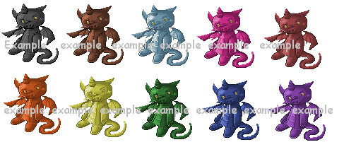 The Plushies: Cats: http://img.photobucket.com/albums/v3...xamplecats.gif Foxes: http://img.photobucket.com/albums/v3...lekitsunes.gif Bears: http://img.photobucket.com/albums/v3...amplebears.gif Dragons: http://img.photobucket.com/albums/v3...ledragons2.gif Accessories: http://img.photobucket.com/albums/v3...exampleacc.gif Popsicles: The original one of these that I made was the light blue one. Anyone who has played Kingdom Hearts 2 may recognize it as being the Sea Salt Ice Cream. The other colors were made afterwards. http://img.photobucket.com/albums/v3...epopsicles.gif Pocky: I only have the three flavors right now. When you order them you get two of that type because as we all know, one is never enough ^^ http://img.photobucket.com/albums/v3...389/pocky2.gif Popular Characters: http://img.photobucket.com/albums/v3...llpopular2.gif |