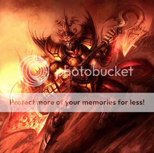 Name : Proclaimedeth Raider (just call him Raider every one else dose) Age : Infinite Place of light/Darkness : The Destroyer Special Attack and power : Roar of the Demon (this engulfs his body in Darkness then allowing his body to reach 100% power and defense but this starts to kill him) Bio : Raider has been on earth for 700 years looking for his followers he has traveled to many places searching for them he has yet had any luck but he can feel that he is getting closer to the creator so he has to work fast Raider has found him self staying at a church because he was found on the step's one night sleeping so Raider is most grateful and will spare them if he win's Pic : Human http://i602.photobucket.com/albums/t...ges/308878.jpg Warrior http://i967.photobucket.com/albums/a...rrior_dark.jpg |