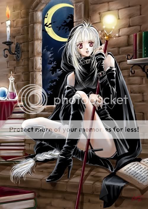 In one hand she gripped a long staff, atop it a crystal seemed to just hover above the crown of the staff. The crystal glowed and pulsated gently, a psion crystal. Not the source of her power, but a way to further focus her power if she were to perform a necromantic spell. Her skin was a bit pale, as it always was, and her eyes an almost faded red color. Sometimes people mistook her for a vampire just because of her pale appearance and red eyes, but she was no vampire, though not completely human either.