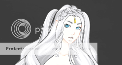 Amala in her human form is a rather ethereal looking creature with long white wavy hair far past her hips and shining blue eyes that remind of the ocean. She wears her hair mainly down with a braid of it acting like a head band and two wispy strands pulled up into bouncy ponytails. Her skin is rather pale and seems to almost glow like the moon. She wears no make up but always looks as flawless as a porcelain doll. She always wears wispy, semi transparent fabrics that seem to float around her curvacious form in pale colors such as silver. She always wears a long scar around her shoulders that appears to never tear or dirty for reasons unknown and dresses rather elegantly. Still, even with her beauty the only thing that suggests her lack of humanity would be the single golden gem in the middle of her forehead that is the dormant form of her horn.
