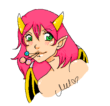 Love sat in her room, the room wasn't very big but it had a bed and a nice rug in the center and a few other things she stole for the humans. She sat on her big fluffly purple pillow, brushing her some what long pink hair with a brush she made from bones she found laying around outside. She looked at herself in her mirror as she chews some bubble gum she stole from a child playing in the woods this morning.