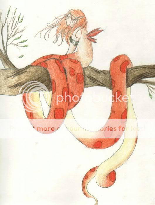 Alfie hissed in his sleep, ever so lightly. His tail started to slip out from the tight coil it had been in as he woke up. He yawned, flashing an impressive set of choppers and two long fangs, and then reached up to scratch his head. He was very odd-looking, even for a naga. Only his lower half was snake-like in outward appearance...he did have fangs and sharp teeth, and a forked tongue. He also had some odd, wing-like spiky protrusions coming out from his back.