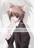 "Hey man!" Someone with a much lighter brown hair with cat like ears and tail.