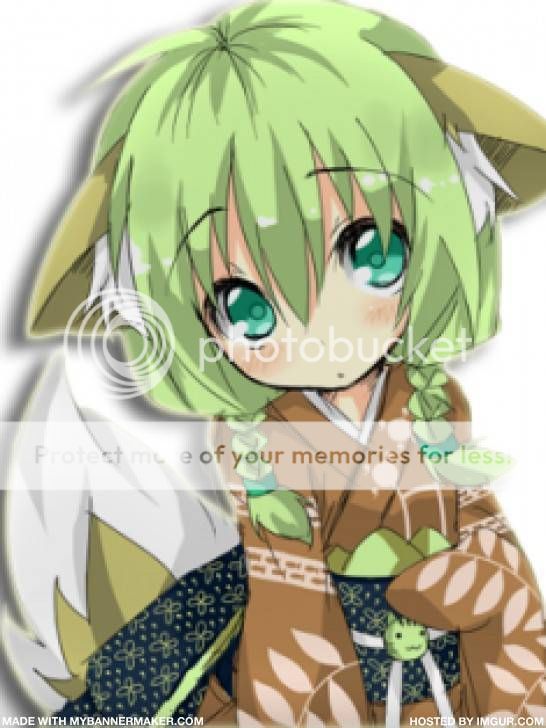 http://i984.photobucket.com/albums/a...psqpc0p58t.jpg soon everything was set up and most of the servants went to start preparing the food while others took their places to greet guests and take their hats and coats, while a few were scattered about here and there doing odd jobs. Shiva easily made her way over to the royal family and gave a slight bow. "Everything is ready and it seems a few guests have already started arriving." she smiled some before looking to Rurik to see if he had any special job he wanted her to do or if she was to go back and help in the kitchen or wherever she might be needed, not that there was much left to help with really. Six of the first guests to show up early were two men, three woman and what seemed to be a little kitsune girl with a child's backpack leash on that looked like a little blue fox. "Ooooh~! Everything's shiny and pretty!" she squeaked a bit then her tail started to go a mile a minute and her ears perked. "Master! Oh! I smell master!" she said excitedly and tried to run in the direction of where Mel and her family was but the male that was holding the end of the leash just grunted and frowned. "Calm down calm down." he said softly as they walked into the castle and started to make their way towards where Mel and the others were. |
