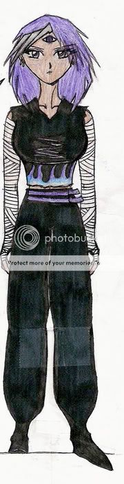 Retsu is a powerful ice demon who was born with a jagan eye. Unlike Hiei, she rarely hides her jagan, preferring instead to simply keep it closed. Like Hiei though, she has been hated and shunned by the people of her birth, the Volcano Village of fire demons. Somehow, by some freak chance, she was born an ice demon, and the village turned her out, abandoning her in the wilderness when she was very young. She was found and raised by the same bandits who raised Hiei, and was also trained as a deadly fighter. Because they were raised together, Hiei and Retsu have known each other for a long time.
