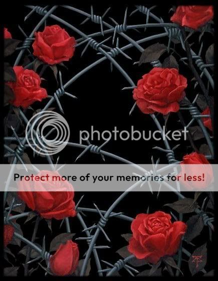Thinking before doing anything she bit her lip and then started painting a black background with thorns and deep blood red roses.