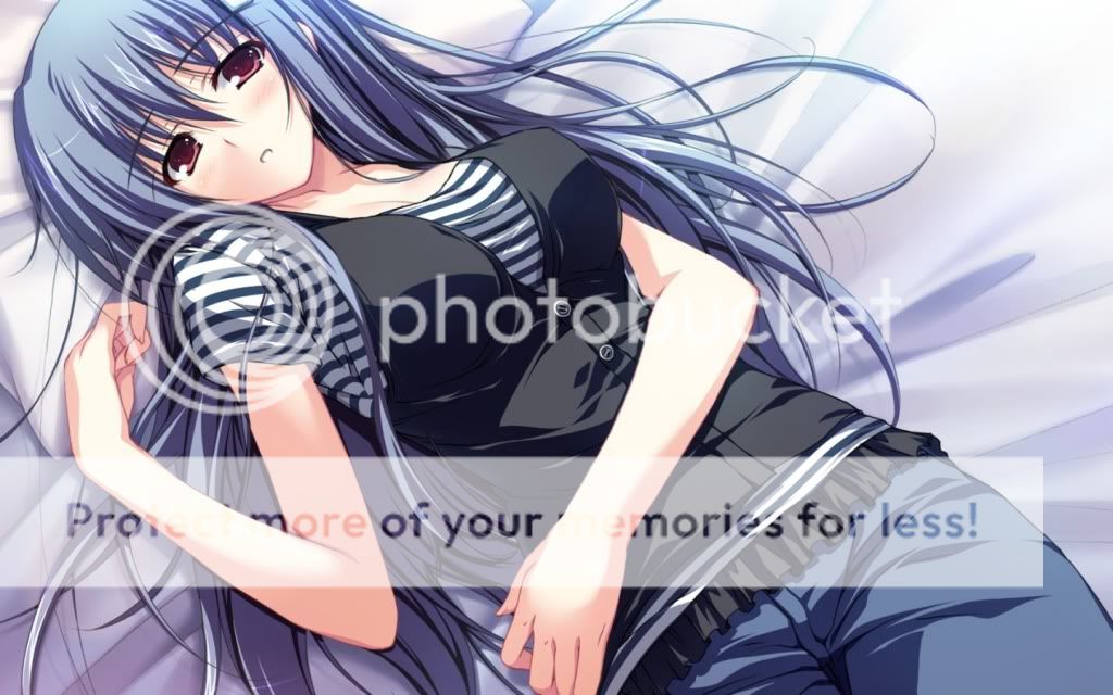 http://i626.photobucket.com/albums/t...Anime_Girl.jpg There was something else in her line of vision. Tiny navy blue strands of hair lay across her shoulder. "What the hell?" Ana ran her hand through the lond tresses. They were softer, lighter, and blue? Ana was curious to see was she really looked like to she hurried over to a mirror and what she saw shocked her. She glanced over at Din and he was still asleep. She licked her lips when she noticed his shirt had ridden up a bit. Naughty thoughts plagued her mind and she decided a colde shower was the best thing. When she came out she sawit was 12 in the afternoon. She felt an unnatural hunger. She rummaged through her fringe for food eating everything in site but nothing made her feel better. It was then that she started frying-burning- the frozen meats. It started to feel better. Then she gave up and eat the meat raw. It satisfied her more than anything else had. With her new found hearing she bounded up the stairs to see Din stirring. When his blazing red eyes opened they met hers. She smirked mischeviously. "Afternoon hansome." |