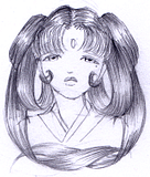 Description: Hoshimi or Hoshi for short is a very beautiful young woman, her skin is toned like most Easterners but much paler in hue. She is very beautiful but very fragile looking as if she had been sickly or has never been out in the sun. Her silvery blue shimmering gaze is so stunning it seems to pierce the very soul if it focus on someone. Her deep silken black hair hanging to her knees if unbound, tho it is often decorated with ribbons and braids, in creative designs for ceremonies and public scryings