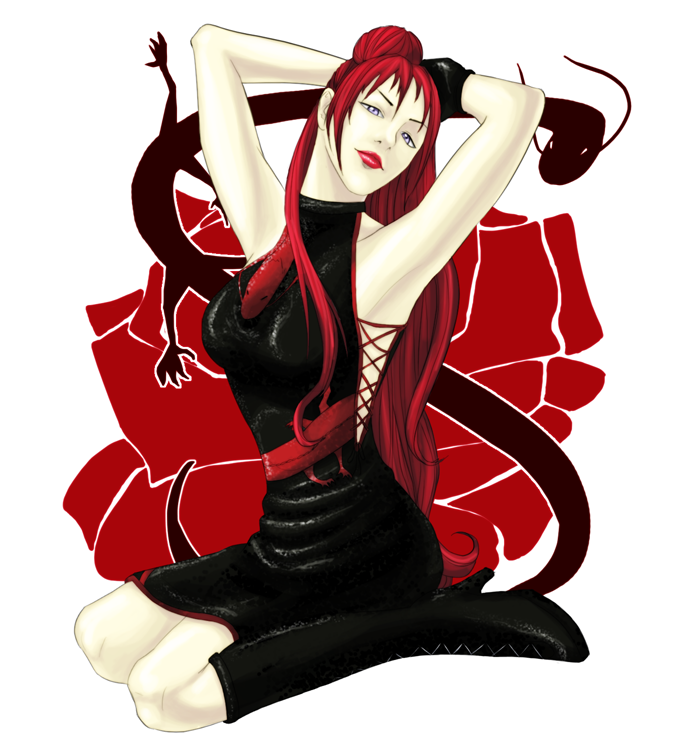 Age: 218 appears 23 Race: Vampire Hybrid Gender: Female Class: Fighter Weapon(s): Dual Dragon eye Katanas Physical Description: Xera stands tall, almost six feet even, the curves of her body seeming to have been placed in just the right spots, she knows how to get what she wants, locations, times, types, anything she can get it just with a flick on the waist and the right dress. Her hair is held neatly in place, a small bun on top of her head and the rest of her long blood red hair trails down to the back of her knees. She of course prefers to wear black, mostly black leather and her usual attire of laced knee high victorian boots and a black leather dress that ties neatly around the base of her neck and moves to hug every curve of her body, but stops at mid thigh. Abilities: The only ability she truly has is the act of removing a persons soul from their body through a tender touch. For this reason she also wears very nice laced leather gloves. Personality: Shes foul tempered, most of the time, bitter short and to the point, she chooses not to waste her words on those she deems unworthy. She also has a sense of arrogance about her, as she views herself as being above others for one reason or another, but believes in finishing what she starts even if she doesn't like it. History: Back when she was born it was discovered that she had interesting abilities; her father, an evil man with evil intentions sought to exploit this power that she had and trained her into a killing machine, he brought much pain to her life and one day the pain needed to end, she killed her father and destroyed everything he stood for, how she wanders around from time to time looking to cause some mischief every now and again. Hope that works for you :D |