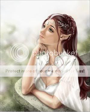 Appearance: Indira has hip length red hair with gold highlights, which she generally wears in a long braid. Her eyes seem to be an undecided color between green and blue, that changes depending on what colors she is wearing and how she does her make up. She is fair skinned. Although well hidden by the lose and flowing clothing she favors, she has a pleasing figure, if a little on the plump side.