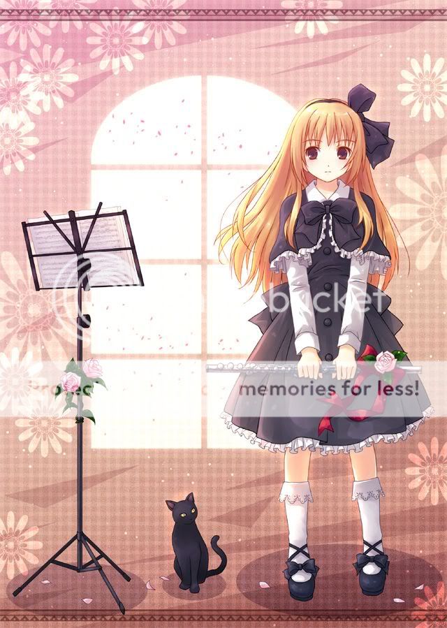 bio: Harmony lives in a mansion on the hillside. She lived with her parents, but they always seemed cautious. Like they would never let her go outside after dark. Then one night while they were celebrating her birthday at the age of 4, some visitors came to the door and when her parents opened it they were taken away by some rather pale people. Harmony was scared and hid in a closet. they didn't find her but she never saw her parents again. She is now 12 and has spent her life continueing to play her music in her mansion, never leaving it since her parnets wouldnt want her too. She is unaware of anything going on around her. Her only company is her black cat, sylvester (i couldnt think of anything lol)