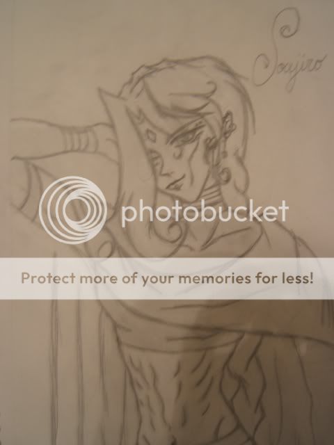 Pic 1. I was trying to go for the arched eyebrow/smirk expression. c.c Ah well. I know...his eye's messed up.