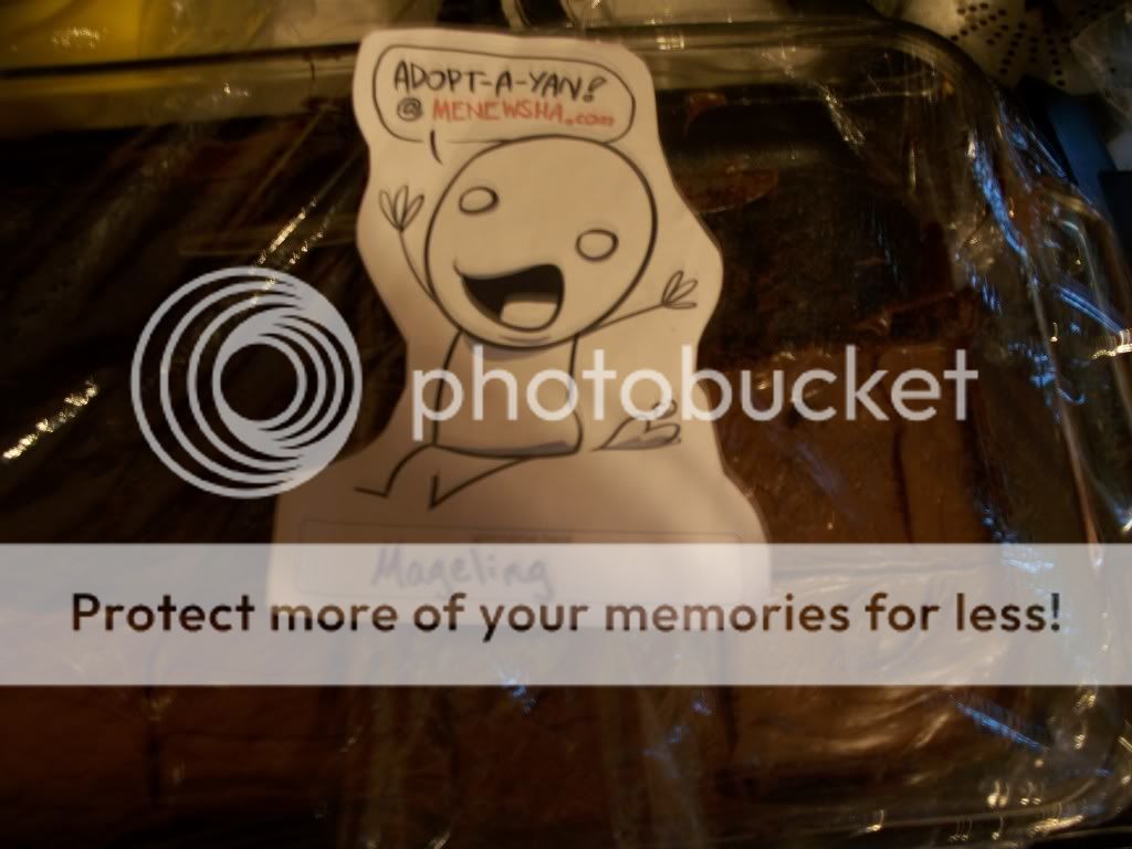 This morning--or rather, this afternoon-- I took Mini-Yan into the kitchen with me for some food. He immediately jumped on the Nutella/Ghiardelli brownies from last night, and really, I can't blame him. I had a craving for chocolate the size of Antarctica, so I had some brownies for breakfast myself. Breakfast of champions, don't'cha know.