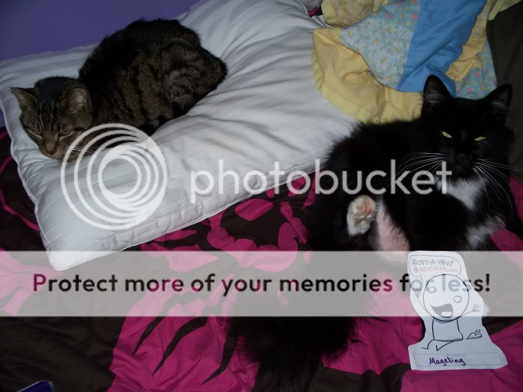 After the adventure outside, Mini-Yan and I went back into the house, where he promptly ran into my room and jumped on my bed to bother the cats. Strangely, they didn't seem to mind Mini-Yan. Instead, what they minded was the flash of the camera. It's odd, because the cats aren't exactly social, but the like Mini-Yan well enough, which is good.