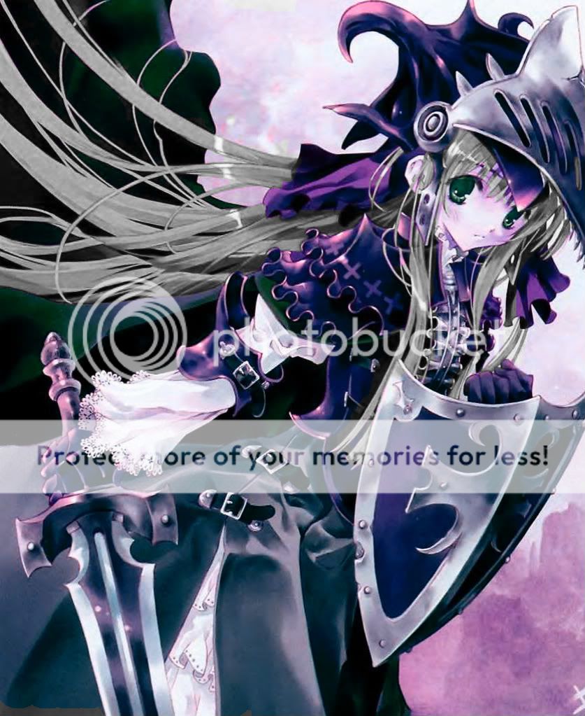 Other: In her personal space she has ten different sets of armor, though a variety of other types of clothing, which she can change into with her re-equip ability, seven different shields, twenty five different swords and three staff weapons (though she usually equips a sword with them instead). Only one of her ten armors is she able to summon all twenty five to circle around her and use to attack. She only uses this however only as a last resort as it practically drains her of energy after a few attacks with all twenty five swords. (Armor set 1 (wearing in the picture known as Black Goddess armor), armor set 2 (Master armor), armor set 3 (Dark Knight armor), armor set 4 (Swordmaster armor), armor set 5 (Knight armor), armor set 6 (Double Swordmaster armor), armor set 7 (Seductress armor), armor set 8(Star Gazer armor), armor set 9 (Nature armor), and armor set 10(Assassin armor).) (Sword sets 1-7, Sword sets 8-12, Sword sets 13-17, and the others are in the armor pictures.) (Shield sets 1-6 and the seventh shield is in her appearance picture.) (As a side note when she re-quips only her armor/clothing and or weapon change, not her hair, skin, size, ect...) Her eyes are also a tinted red color, though can only be seen by others if her armor at the time either doesn't have a helmet, or if she takes it off.