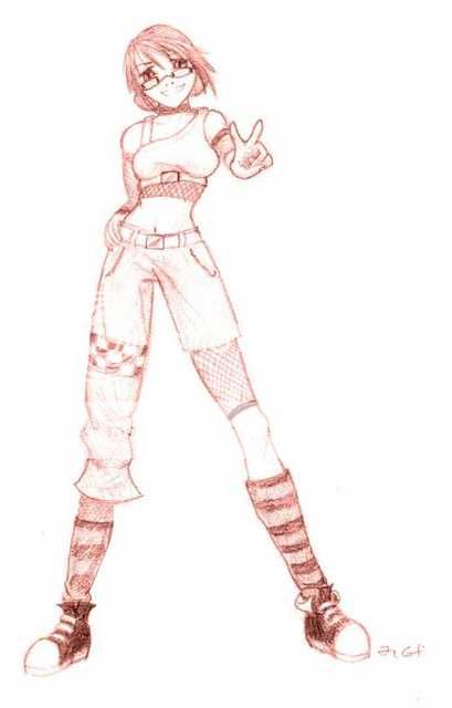 I kinda messed up her hand and her legs.. X_X Based her off of Haruko from FLCL. :D