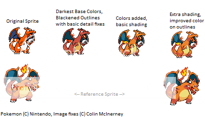 Yes, it's just a redone sprite. But I didn't just recolor it or throw on an extra body part. I revamped a Charizard sprite from Pkmn Gold and Silver to look more like it came out of Diamond and Pearl. Here are the results: