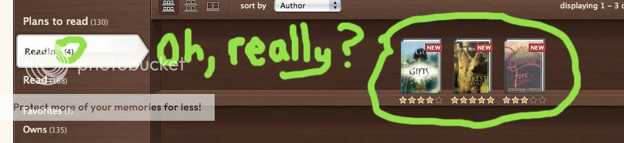 @Leenie: You have a life? What? I didn't finish a book today, but I did get three fourths of the way through.