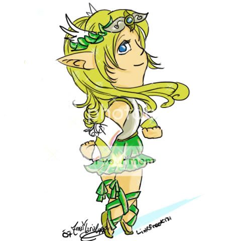Cute. ^^ I love the coloring..but the head is a little to big.. but it looks nice overall. =]
