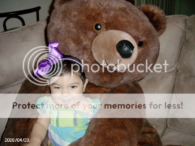 Aw, it's really cute. x3 I wuuuuv huge bears. <3_<3 I have one. I can sit in it's lap still, even if I am 15... Well, not as comfortably as when I was 10, though. XD That's my biggest one. *nods* His name is Toptigins. <3
