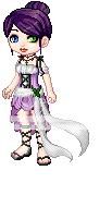 Description: Alice is 5'3", is very a thin and feminine, white skin and one blue eye and one green eye. She has long straight purple-ish black hair with bangs, she usually wears most of the back of her hair in a bun held with chopsticks with little tassels on them. She is very sociable and happy and shes always around the tavern cleaning up messes or tending to customers. She is dressed in a lavender, white and black corset with a matching purple skirt, and a long white sash around her waist, she ALWAYS wears her religious choker with lots of crosses on it because shes so religious, and she has laced-up sandals