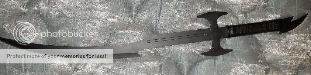 i like the more sleek design of a scimitar. i just need to get used to its weight and how to use it properly before i do anything with it. this baby is sharp!!