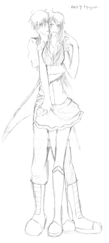 Purpose: So, I need an excuse to draw more than I normally do. Haha, it's a bad thing, I suppose, but, oh well. :3 It's cool, right? Teehee. I also kinda wanna try to color with the tablet, so, yeah...please bear with my failure tablet work!
