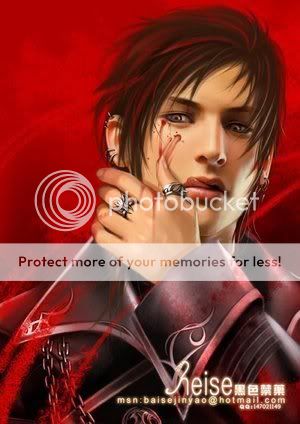 Bio: He was shirtless, yes Shadow had gone through some...Changes. Now, his name stood for what he was. He was still vampiric and human, but now half vampire...Half Shadow. The shadow had covered one half of his body vertically. The right side of his mouth was no more, looking like it might've been sewn shut by the shadow's spirit. He wears black gothic pants, with chains hanging off of them, a black trenchcoat, which had a leather hood, just long enough to cover his top half of his face, black boots usually wet with water, as it did rain in Blaq alot of the times and a black glove on his left hand which had torn off finger holes. His hair had turned a bleached blonde. His right eye was a misty grey color, which emited a small mist at times when he is in the shadows, his left eye was a vampiric red and his body was human...What is this twisted creature? Friend, or foe? This man preys that he can keep this creature under control. If he fights, it get's stronger and more attatched to him, as if it was him... He must keep it under control! And if he dosen't and it takes over? He is sadly doomed to roam the earth a souless demon...Hungry for blood and flesh and then he will find a new being to take over, growing stronger....