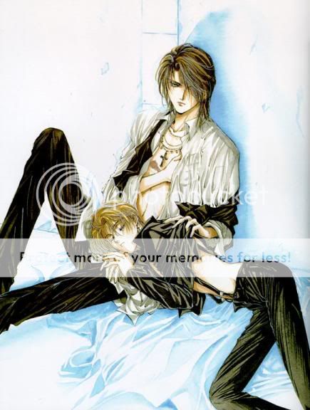And these pictures are lovely haha (loving the gay vampires!) I don't have any to share sadly, because I never save yaoi pics to my computer because if my little brother would find them, it would creep him out. XD;