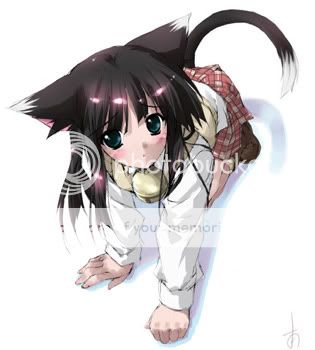 Seeranii Wandered through the woods. she had a satchel in one hand full of spare cloths and a few possessions. Hanging from her other arm was a basket filled with sweet rolls that the nice plump woman who works at the bakery in the Town the cat girl was headed away from gave her before she started her trip. she had only eaten on of the rolls, wanting to be able to share the rest with her New Master or Mistress. She knew nothing of her new employer. just that she was hired as an assistant and given the directions as to when and where to show up. Seeranii was just becoming a teenager, though her meek appearance made her seem only a child. she wore a wrinkled plaid skirt that brushed her legs just above the knee, and a white mens dress shirt that was a couple sizes to large for her. around her neck she wore a leather collar with a large brass bell dangling from it, that made a pleasant chime every time she moved.