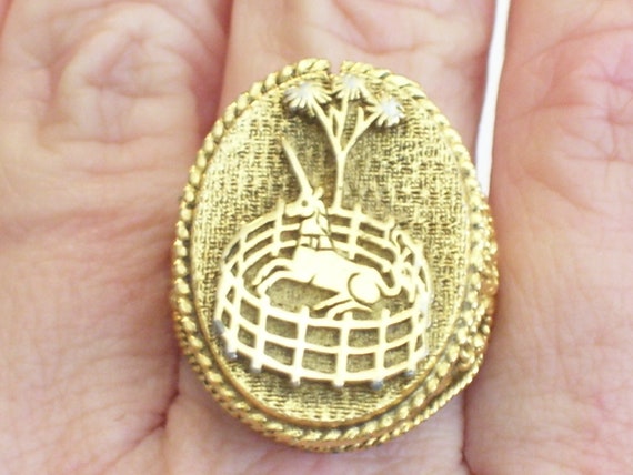 The unicorn in captivity accessories that Corday made for one of their perfume lines in the60s and 70s, like this ring.