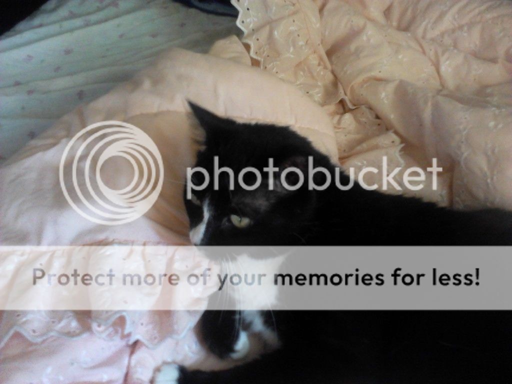 Yeah he is such a cute kitty. He's curled up on the couch up against me again like he usually is. Bummed out I have to get up soon and get ready for work ^^"