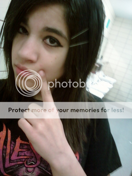 My hair grows out pretty quickly (About 2 1/2 inches a year) o.o I have layered short hair with bangs to the side, but they don't look like bangs anymore because my sister was mad at me a couple months ago and hacked my bangs off while I was sleeping. She didn't look very pretty after that. :P