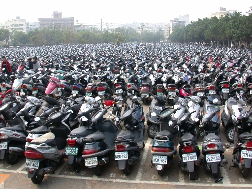 A large portion of our driving population rely on scooters, hence scooter parking lots and parking spaces everywhere.