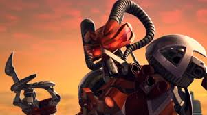 Peeking from around a tree,a tall,burgundy-colored figure took an intense intrest in the party. Though she attempted to remain in the shadows,her biomechanical form did not blend well with the organic enviorment,and it was not long before she was spotted.