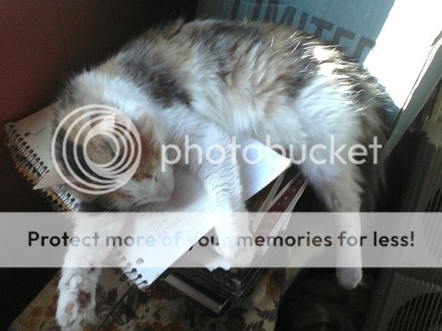 Here's an evil kitty, she's always asleep on my gaming books.