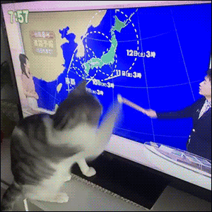 Kitteh sees the weatherman has a toy. Kitteh wants the toy.