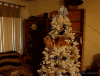 That cat's my hero, but oh my God, that tree is so beautiful. White tree AND blue ornaments? Is this taken from my future? Why do I get a real cat???