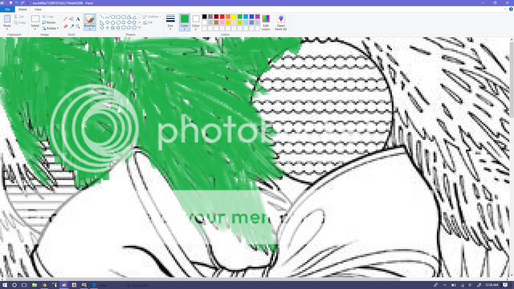 Then, and this is my fav part, zoom in where you want to color, pick your color and SCRIBBLE AWAY~ but lightly you still want to be able to see the original lines through your color :)