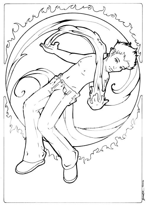 only with gold stripes here and there between the dark blue...but after he got captured his wings were torn off by the god, so he wouldn't try to escape...now he only has small scrapped leftovers of his wings....he usually has a golden collar with a golden chain, and is tied down since he still tries to escape >.>....
