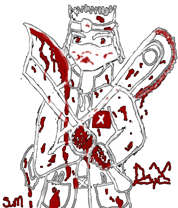 Discription: He was a nice surgeon, until he was assigned in an asylum. He became quickly insane and never to see the daylight again. Soon he gone mad and used tools, like the ax and a chain saw. His madness spreed around. Be careful, if you get just a cut, you will need a surgery by Dr. X.