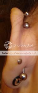 I have 8 regular ear piercings (my lower lobes are gauged to a zero) and I have a vertical industrial piercing. http://i6.photobucket.com/albums/y24...Water/vert.jpg
