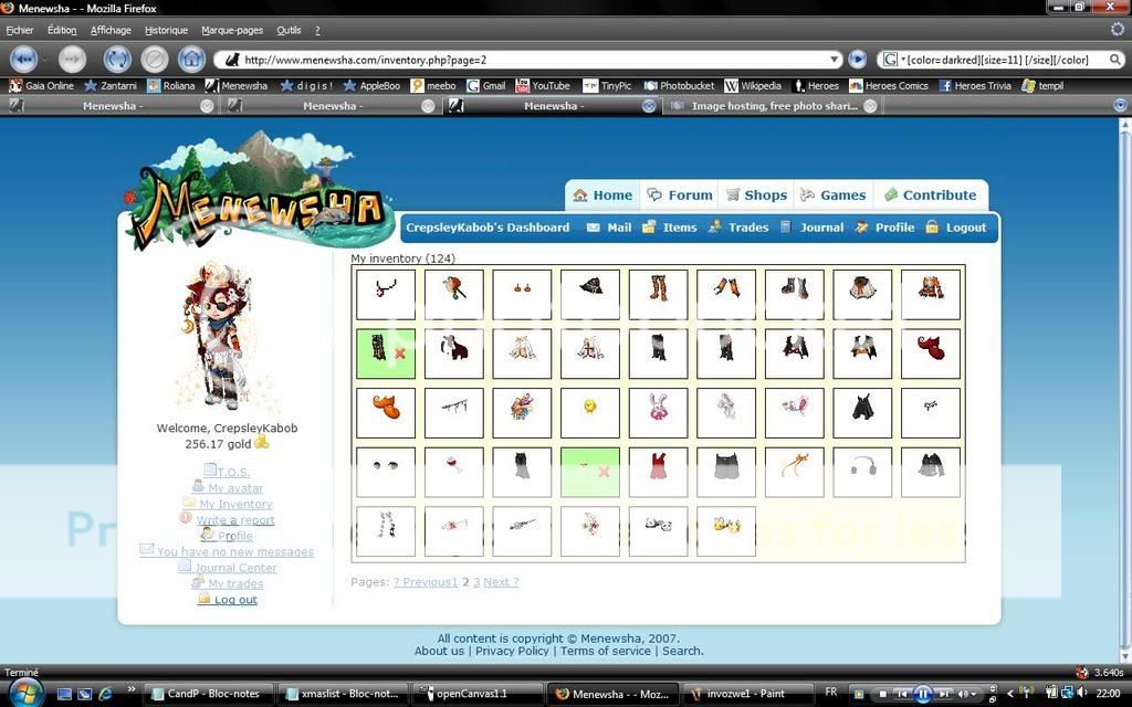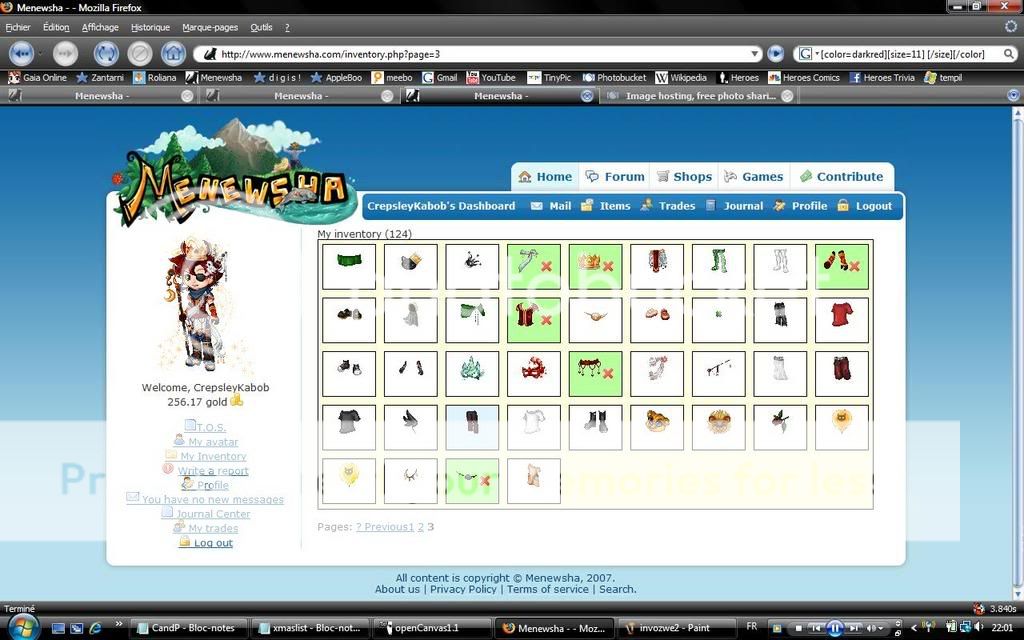 And I have a gold clover pin loaned out, a queenie+tons of halloween items, a dec+nov set on my mule and rawr has my hannukah cape/cloak thingy xP;;