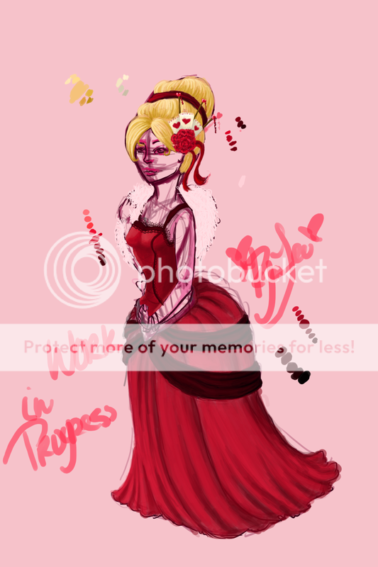 yeah I know the hand looks flat I'll work on it ...and maybe bring it up once skin tones stop terrorizing my dreams. Should I take the scallopey lace all the way up or just leave it where it is...I just sort of stopped with it and I'm not sure if I should leave it...it makes it look a little unfinished :\ maybe I am just insane.