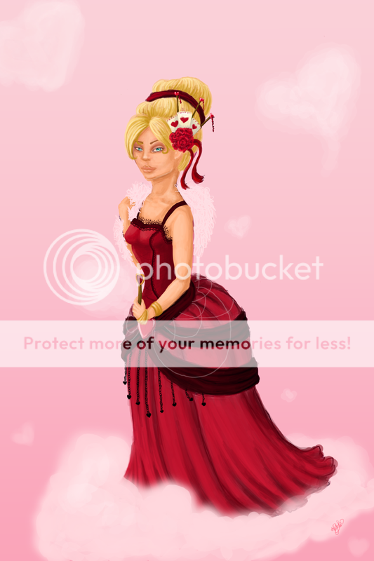 I think it's very nice, especially the way you shaded the corset... wish to see it when it's done with the clouds and everything :D
