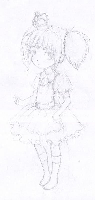 The lolita girl drawing is awesome as well =D. I agree with everyone about how she could use some shoes though :3. Other than that, it's great. I especially like her dress, it's shaped the same as my skirt xD. Looks good though, the hair looks incredibly cute ;P