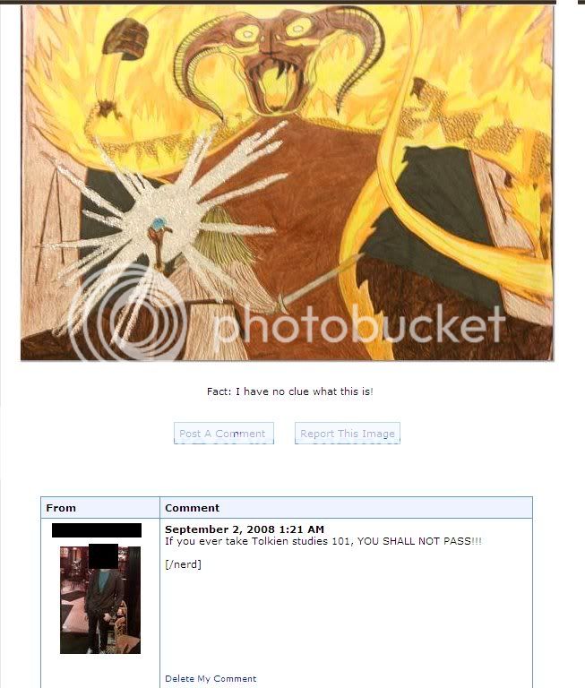 HAS NOONE SEEN THE LORD OF THE RINGS?!XD That's totally the balrog, with his whip of firey death. And gandalf.:3 DAMMIT LEE STOP MAKING ME LOSE THE GAME.