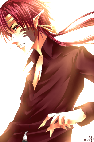 The guy in the second picture is soooo hot! I like how the way you drew is face is a bit of a departure from your usual style, but still recognizable. His eyes are sharp and bishonen-like, complementing the other angles in the picture. I also LOVE the gradient shading you did on his face and hands; it adds a lot of depth to the picture, and it also makes me want to try my hand at it! xDD